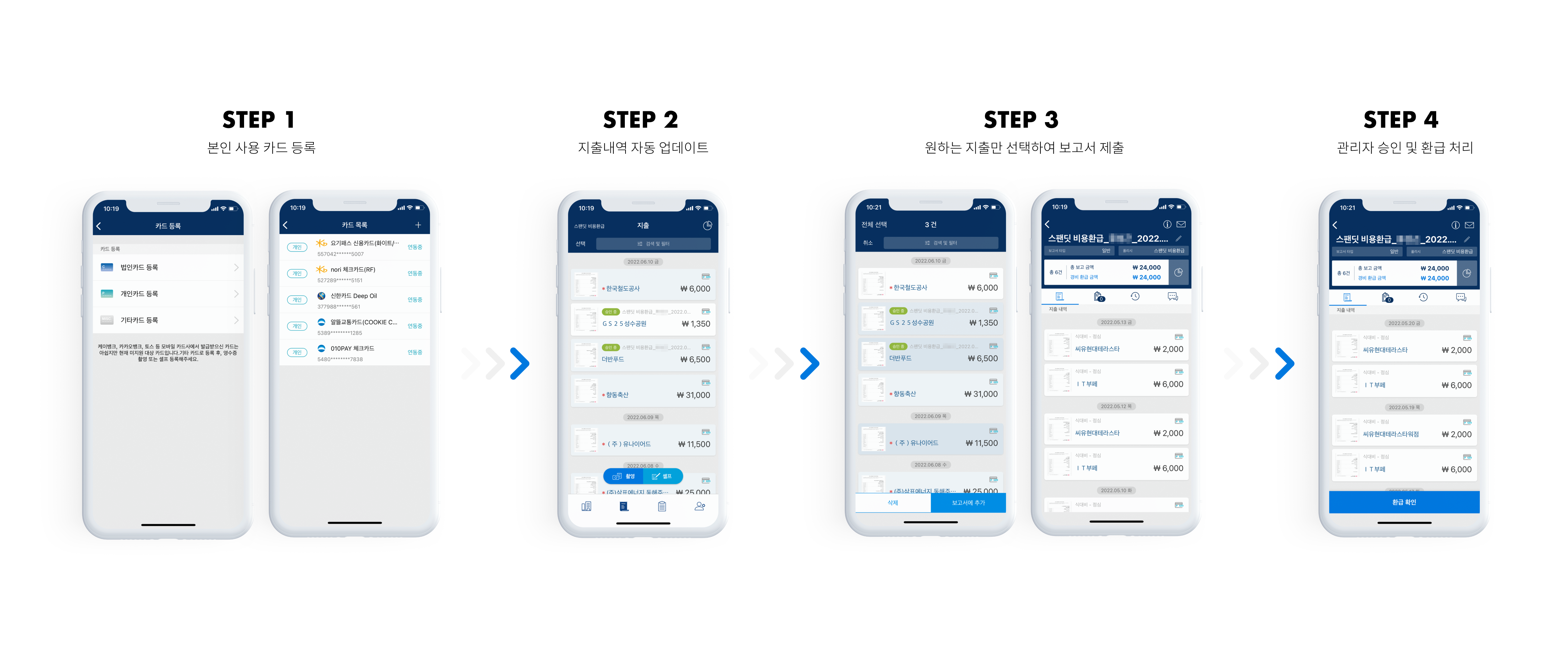 스팬딧에 본인이 사용하는 카드만 등록해두면 자동으로 지출 내역을 불러와 사내규정에 따라 제출할 기간이 되면 지출 내역들을 클릭해서 제출하면 됩니다.